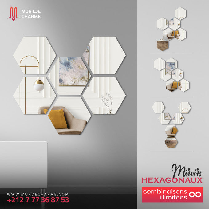 Grandiose et Élégant : Ensemble de 6 Grands Miroirs Hexagonaux de 21 cm x 18 cm